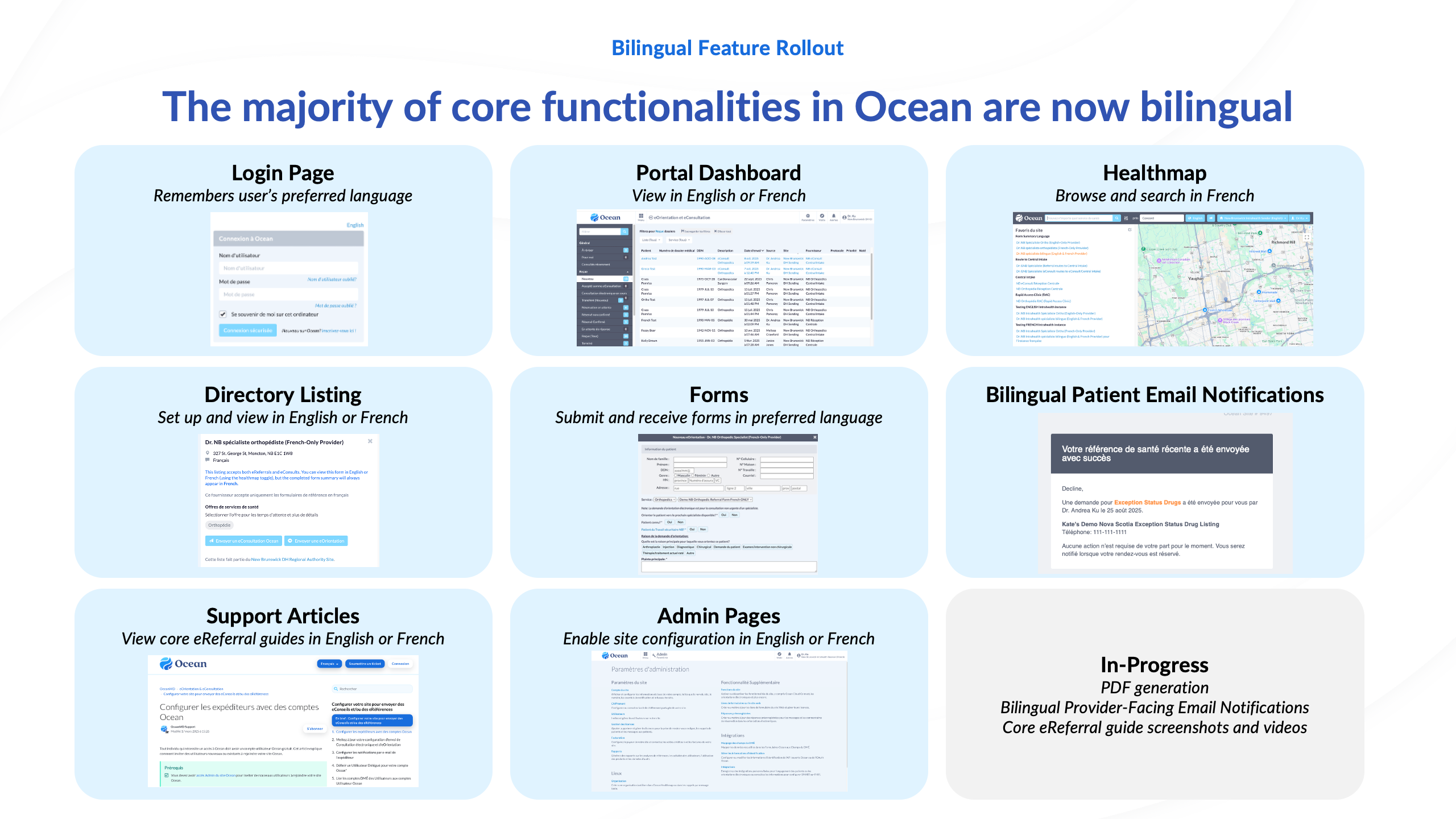 Thanks to extensive input from provincial partners, we’re now delivering a more complete bilingual ecosystem within Ocean, one that meets the needs of clinicians working in bilingual environments and simplifies cross-team collaboration across Canada.